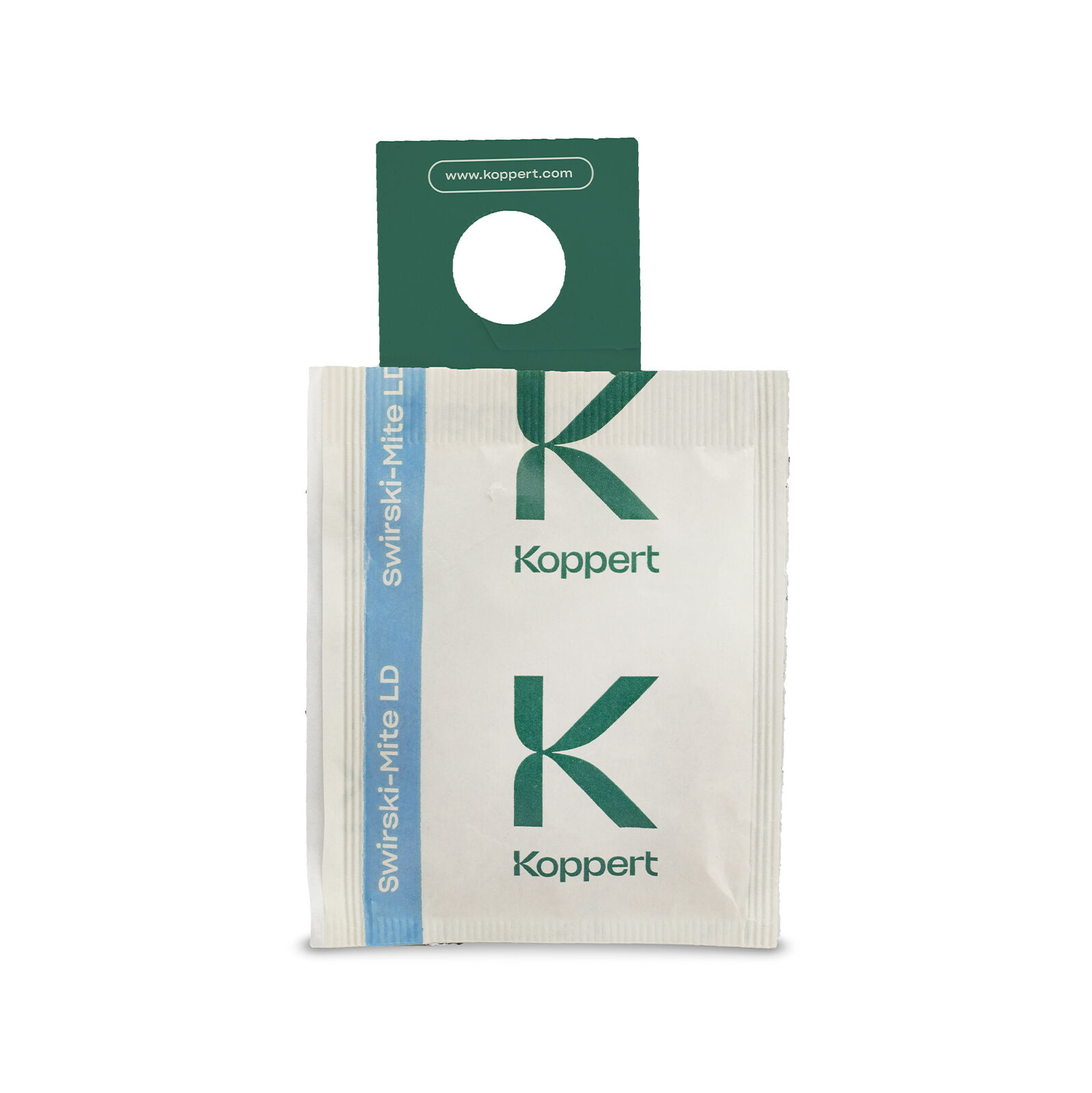 La dosis de Swirski-Mite LD depende del clima, el cultivo y la densidad de la plaga y siempre se debe adaptar a su situación particular. Empiece la introducción preventivamente o tan pronto como se detecten los primeros ácaros plaga en el cultivo. Use, como mínimo, 4,000 sobres por hectárea y cuélguelos repartidos uniformemente por el cultivo. Si no se logra controlar la plaga, la suelta se debería repetir tras 5-6 semanas. Si desea asesoramiento sobre la mejor estrategia a seguir en su situación, consulte a un especialista de Koppert o a un distribuidor de productos Koppert autorizado.