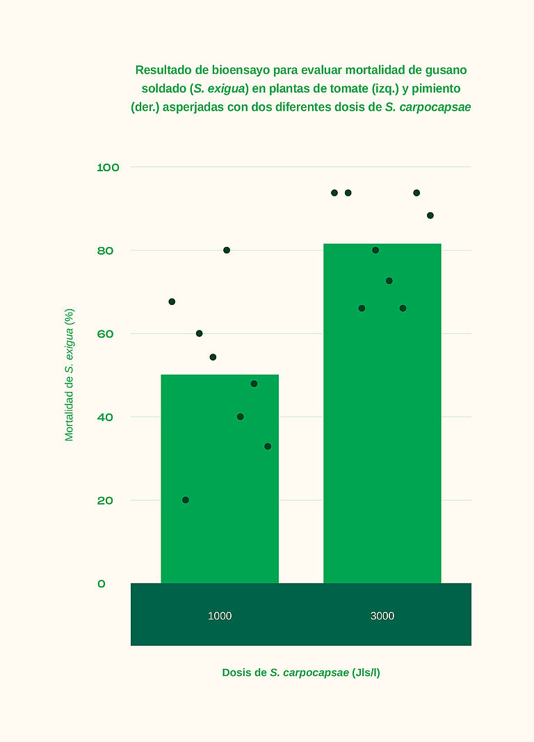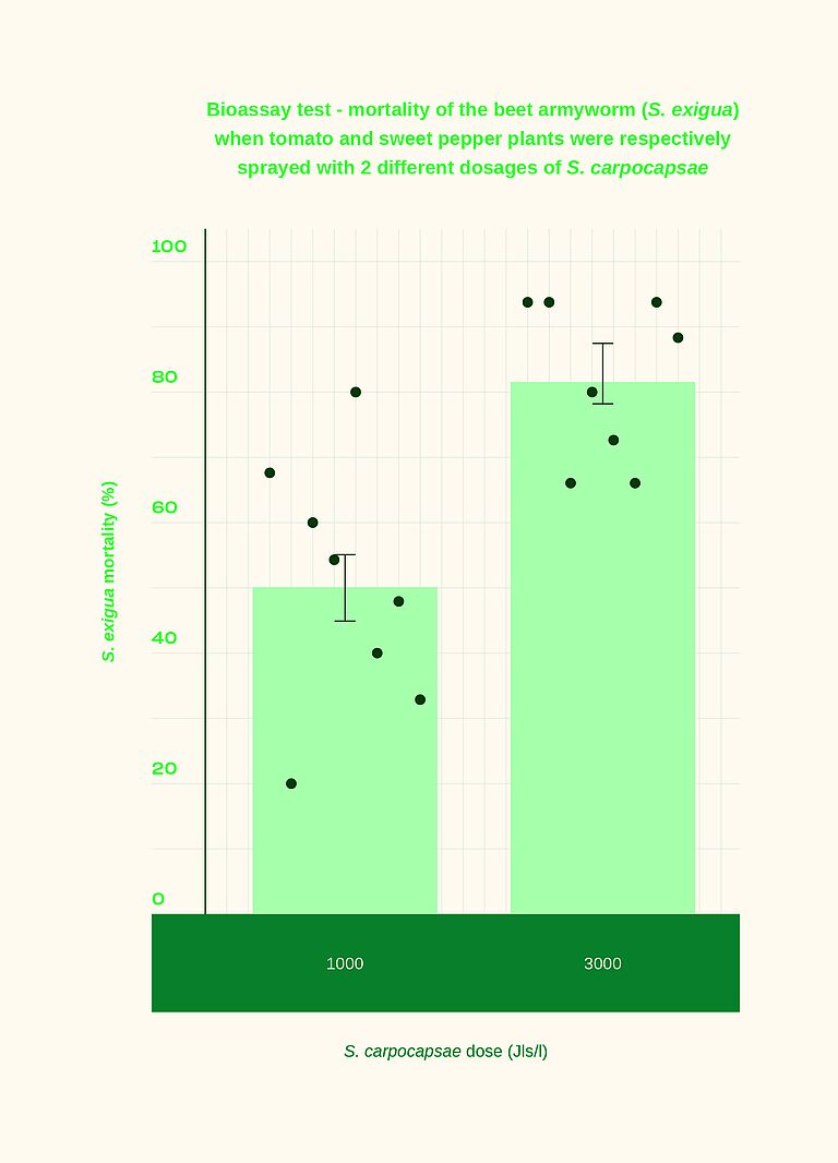 Los departamentos de I+D de varias subsidiarias de Koppert llevan años investigando las aplicaciones foliares de nuestros nematodos. La experiencia en laboratorio y en campo demuestra que Entonem y Capsanem son significativamente eficaces contra una gran variedad de gusanos y que, bajo condiciones óptimas de humedad y temperatura, los nematodos pueden sobrevivir en la superficie de la hoja durante muchas horas.