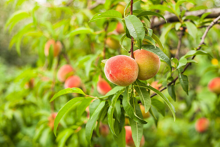 Prunus persica es un árbol caducifolio indígena del noroeste de China, donde se domesticó y cultivó en primera instancia por sus frutos. La descripción ‘persica’ se refiere a la popularidad que tuvo el árbol en Persia cuando se introdujo allí. El fruto del árbol suele ser dulce y jugoso y se denomina melocotón o nectarina. El durazno pertenece al género Prunus (al igual que el cerezo, el albaricoquero, el almendro y el ciruelo) y la familia de las rosas. Al igual que el almendro, el durazno también pertenece al subgénero Amygdalus, debido a la cáscara dura y corrugada que encierra la semilla. Desde el punto de vista comercial, los duraznos y las nectarinas se venden como productos distintos, pero son de hecho la misma especie.