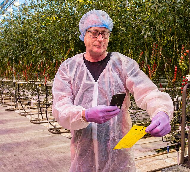 Desde el punto de vista de Jan, ni siquiera se trata del número exacto de moscas blancas adheridas a las trampas pegajosas. No", dice, "me interesa más ver la tendencia. ¿El nivel de infestación de mosca blanca es el mismo o está subiendo o bajando? Quiero verlo de un vistazo. Si el nivel de infestación aumenta, puedo tomar rápidamente las medidas adecuadas".