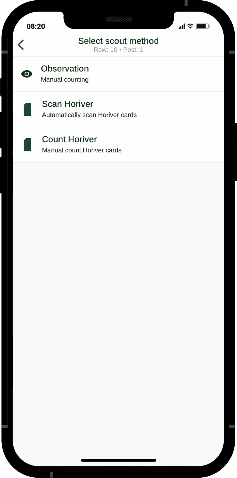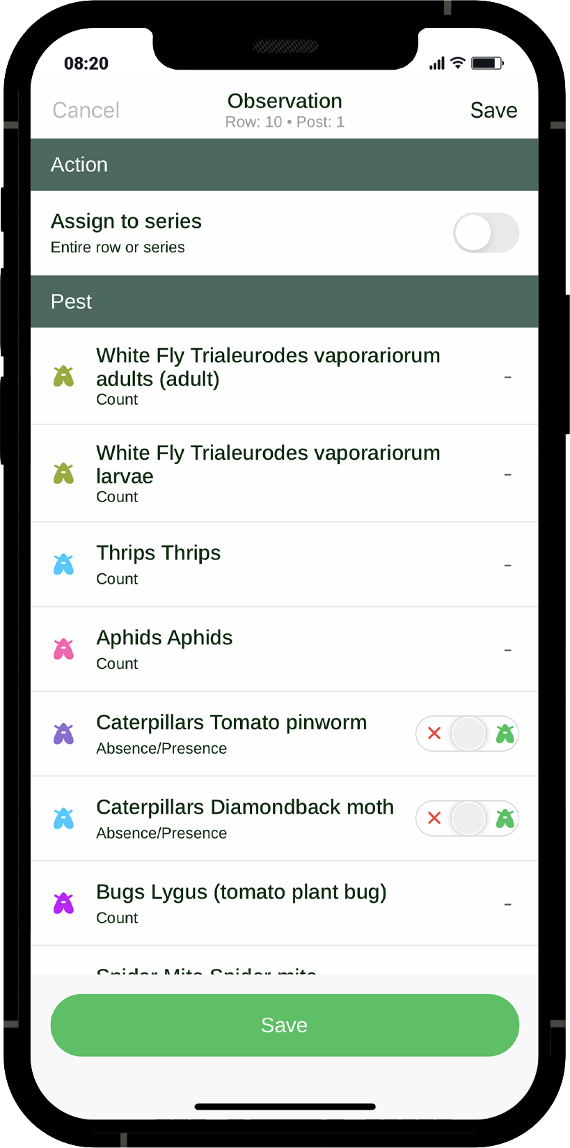Nuestra aplicación móvil integra nuestros conocimientos profundos y experiencia sobre el monitoreo efectivo de plagas y enfermedades en los cultivos. Ahorre tiempo y aumente la eficiencia a partir de la automatización de la recopilación y análisis de datos, pudiendo dedicar, de esta manera, dicha mano de obra a otras tareas. Puede escanear las tarjetas adhesivas Horiver mediante nuestra aplicación móvil para identificar y registrar automáticamente los insectos nocivos, como la mosca blanca. Además, esta aplicación móvil le permite registrar todas las anomalías en su invernadero.
