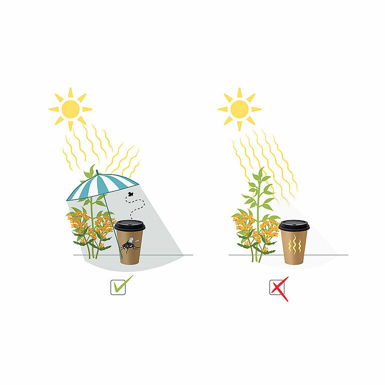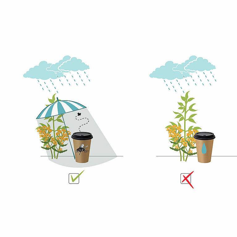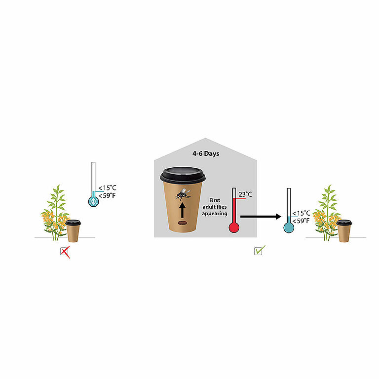 Proteja la apertura para las moscas contra el calor. Si la temperatura supera los 20 °C, se recomienda usar bolsas o vasos de color blanco o claro.