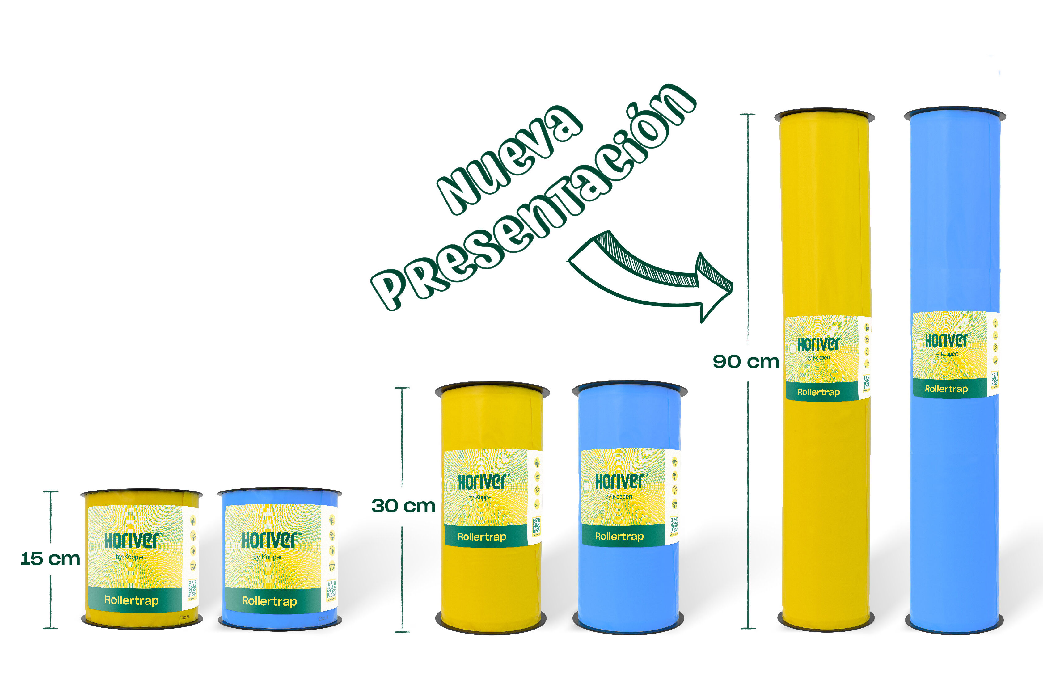 Por otro lado, las Rollertraps, rollos adhesivos colocados estratégicamente en puntos de infestación o zonas con alta presión de plagas, ayudan en su control por medio de la captura masiva, ya que atrapan eficazmente a un amplio espectro de insectos dañinos para los cultivos. Debido a que nuestras Rollertraps encajan perfectamente en la categoría de trampas adhesivas, ahora también llevarán la marca Horiver en su etiqueta de empaque.
