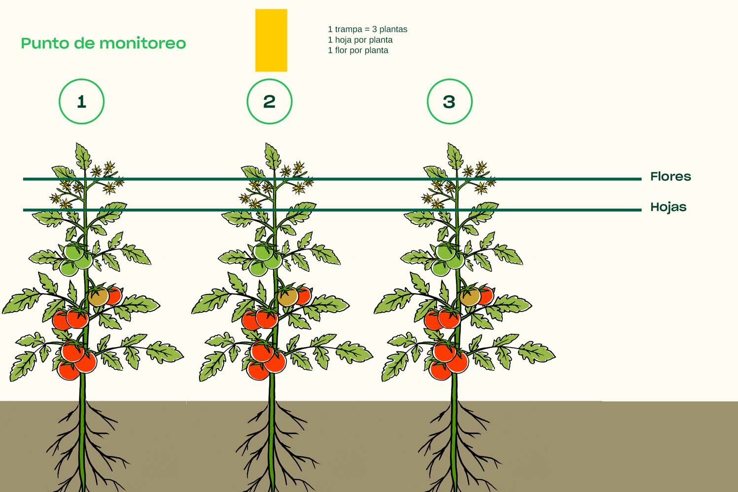 El monitoreo consiste en revisar el cultivo de forma periódica para medir la densidad y evolución de plagas y enfermedades que puedan estar presentes. Al poner constante atención a la fauna de nuestro cultivo, nos adelantamos a la aparición de posibles problemas y sus consecuencias. La cultura del monitoreo ayuda a procurar la salud de nuestra producción antes de pensar en pérdidas o tomar decisiones precipitadas que repercutan en el volumen de cosecha y su impacto económico. Las estrategias adoptadas por un gran número de productores hortícolas que consisten en un fuerte uso de plaguicidas sin realizar un monitoreo correcto, suelen derivar en gastos que pudieron evitarse.
