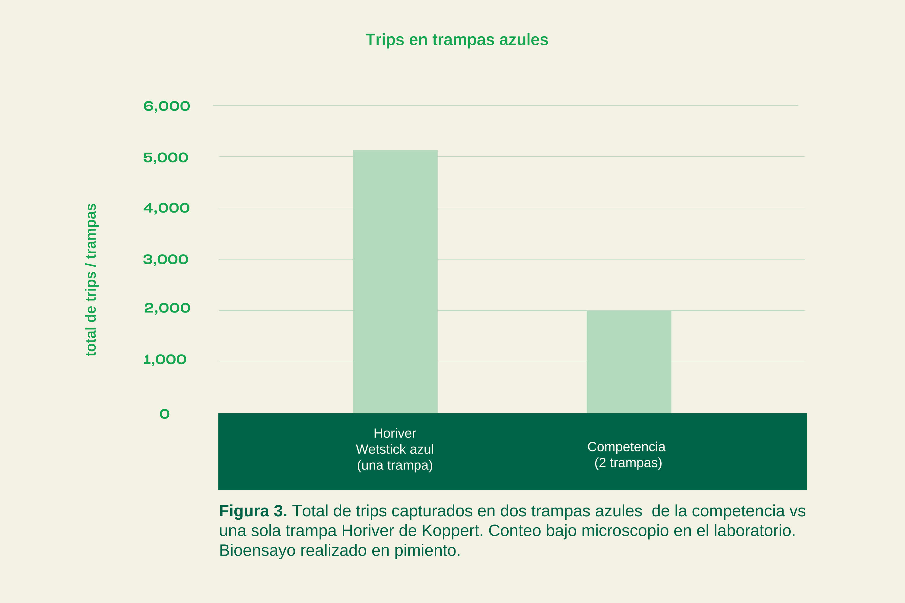 Las dos trampas azules (Horiver vs competencia) probadas mostraron diferencias en su rendimiento, dándole a Horiver una ventaja de hasta cuatro veces mayor que la trampa adhesiva de la competencia (figura 2).
