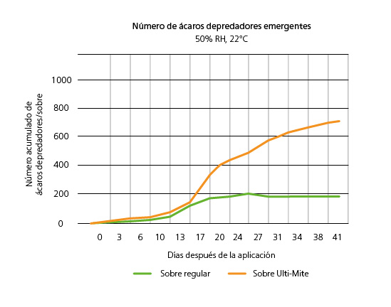Al ser más grande el empaque, el ácaro tiene las mejores condiciones para su reproducción y su población puede desarrollarse de manera más rápida y fuerte. Esto hace que Swirski Ulti-Mite duplique su desempeño en comparación a otros productos con este mismo tipo de ácaro, en condiciones subóptimas. Esto resulta en un control de trips más eficiente y efectivo.