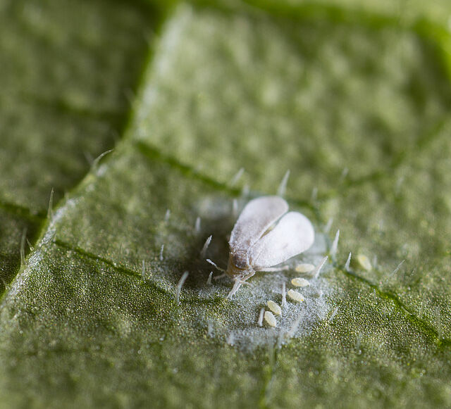 Las moscas blancas no son moscas de verdad, sino que pertenecen a la orden Hemiptera (chinches). Junto con los pulgones y los cocoideos o insectos escama, pertenecen a la división Sternorrhyncha. Las moscas blancas forman la familia Aleyrodidae. Las especies más comunes son la mosca blanca de invernadero, la Trialeurodes vaporariorum y la mosca blanca del tabaco, la Bemisia tabaci. Ambas están muy extendidas, son polífagas y, a grandes rasgos, son comparables.