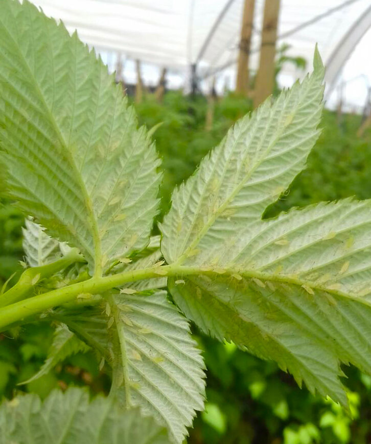 Las ninfas y adultos extraen nutrientes de la planta y perturban el equilibrio de las hormonas de crecimiento de esta. Como resultado, el crecimiento de la planta se ralentiza y provoca la deformación de las hojas o, si la infestación se produce suficientemente pronto en la temporada, la necrosis de las plantas jóvenes. El retraso en el crecimiento y la defoliación disminuyen la cosecha.