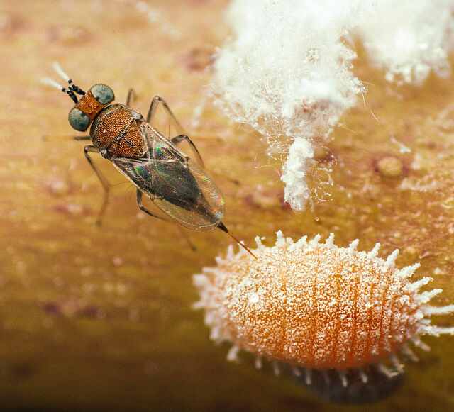 Las avispas parasitoides son un grupo diverso de insectos que parasitan a otros insectos, controlando eficazmente sus poblaciones. Estas avispas ponen sus huevos en el interior o sobre el cuerpo de las plagas que las hospedan. Cuando los huevos eclosionan, las larvas se alimentan del huésped y acaban matándolo. Las avispas parasitoides son valiosas para controlar plagas como picudos, piojos harinosos, pulgones y moscas blancas.