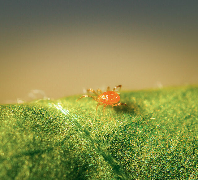 El ácaro depredador Phytoseiulus persimilis también está disponible en sobres de cría (Spidex Vital Plus). En este caso, los ácaros depredadores se multiplican en el sobre y se dispersan por los cultivos durante varias semanas.