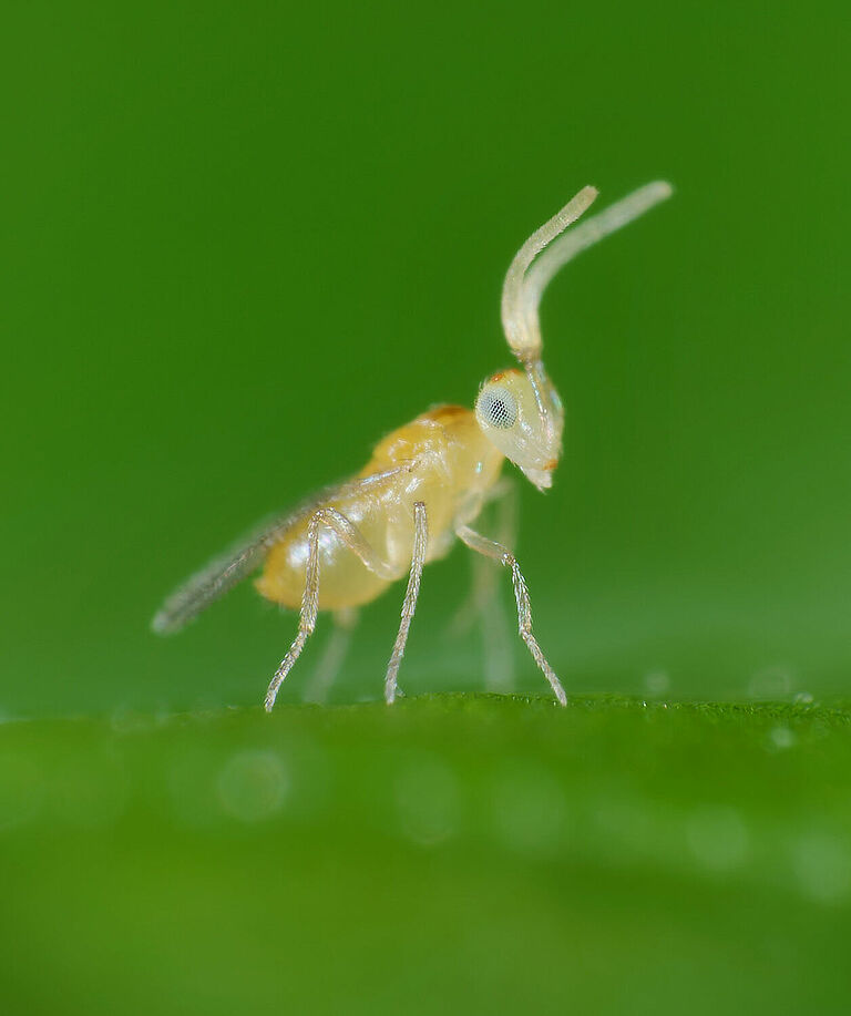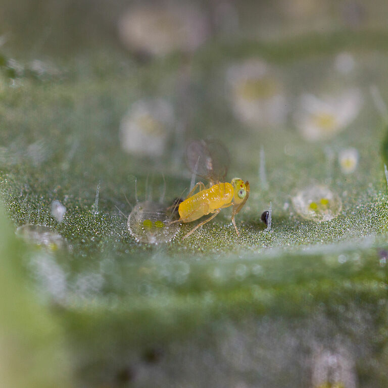 La avispa parasitaria Eretmocerus eremicus está disponible en Koppert como Ercal.