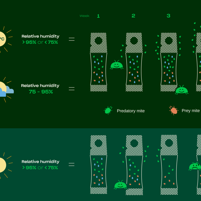 Ulti-Mite representa un avance significativo en el envasado de ácaros depredadores y fue diseñado para mejorar el control biológico de plagas en un amplio rango de cultivos. En el 2016, introdujimos esta innovadora configuración en nuestro portafolio de productos a base de ácaros, que anteriormente consistía solamente en botellas y bolsas de papel. El innovador sobre de Ulti-Mite, fabricado con una película aluminizada 100% compostable industrialmente, permite a los ácaros depredadores prosperar y crear poblaciones fuertes, especialmente en condiciones subóptimas.