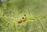 Tras emerger de la pupa, los mosquitos cecidómidos adultos buscan activamente las colonias de araña roja y depositan sus huevos a su lado. Tras emerger, las larvas se alimentan de las arañas rojas,