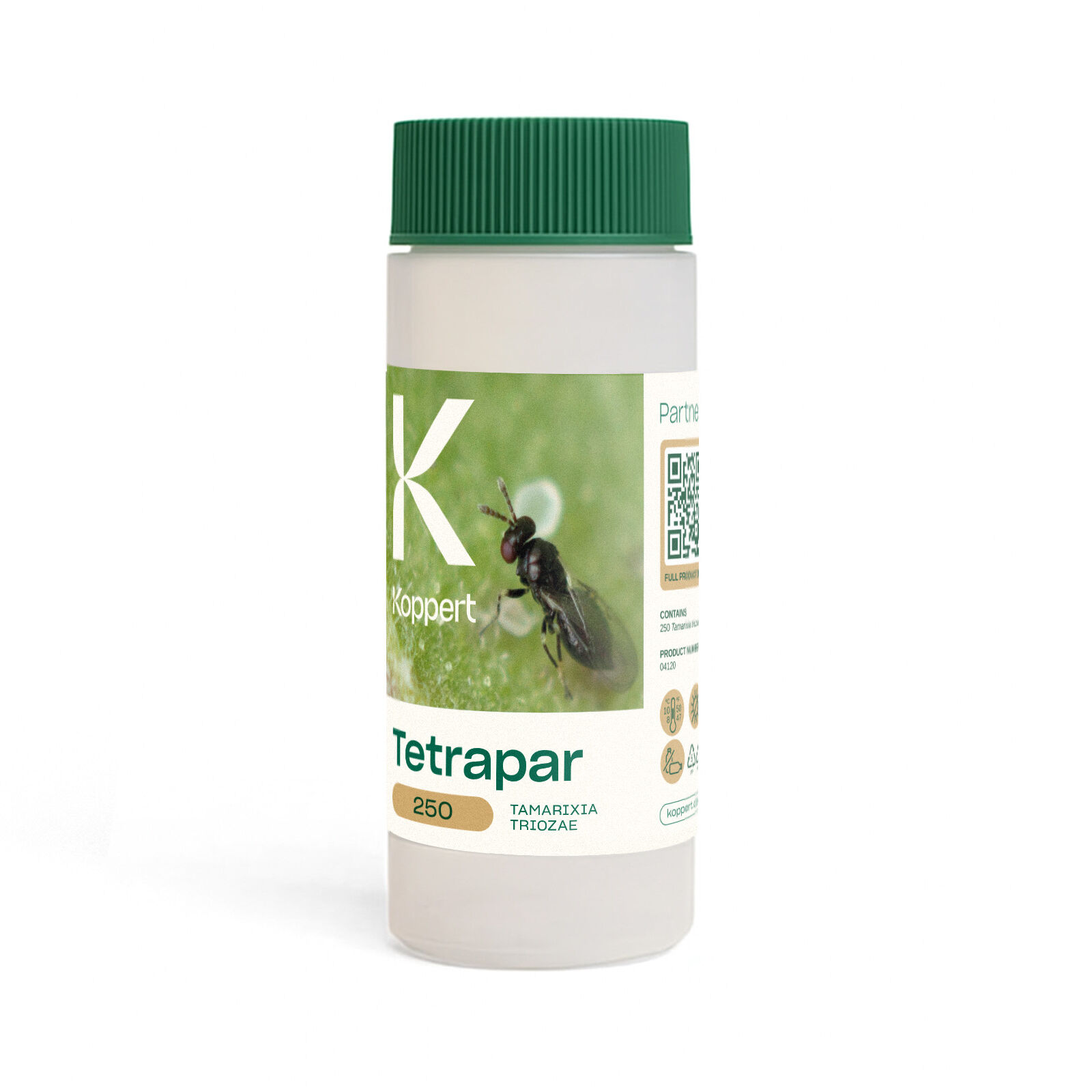 Utiliza Tetrapar preventivamente para el control de Paratrioza-salerillo. Usa una dosis alta de liberación en infestaciones significativas; en caso de focos de infestación, libere directamente una botella. Disemina el material sobre las hojas en las líneas, camas o surcos del cultivo. Distribuye las avispas de forma homogénea en toda la superficie del cultivo y libera el producto cada 20 m en surcos alternados.